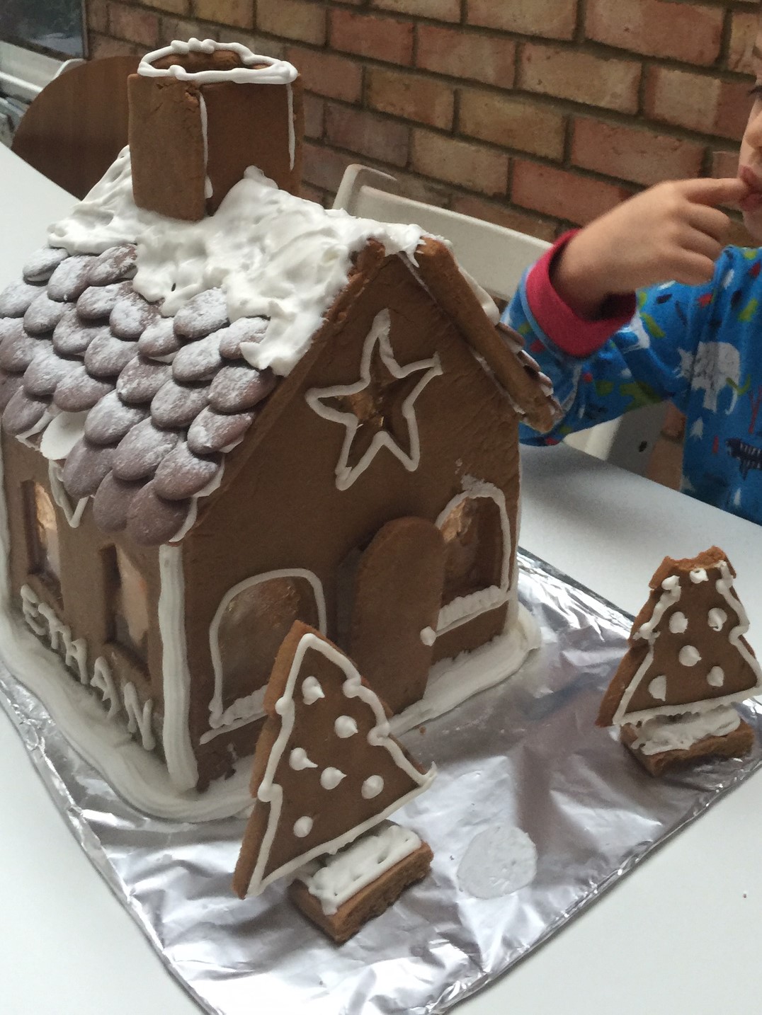 So yesterday I tried to bake Mary’s gingerbread house. My youngest one (Bug 2) has seen one of these in our local bakery and had asked me to bake one, so I thought, why not?